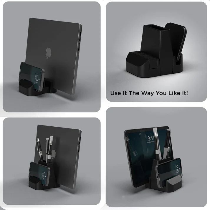 It features a vertical laptop holder, smartphone stand, cable organizer, pen and pencil holder, and coasters, making it the ultimate all-in-one accessory. With Modular, you’ll be able to boost your productivity, reduce clutter, and create a comfortable and efficient workspace.