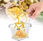 Home All Products Mini Square Fry Basket 5″ x 4.5″ x 3 Inches Table Serving Frying Fries Chips Baskets French Fries Desk Food Presentation Mesh Basket Kitchen Cooking Tool